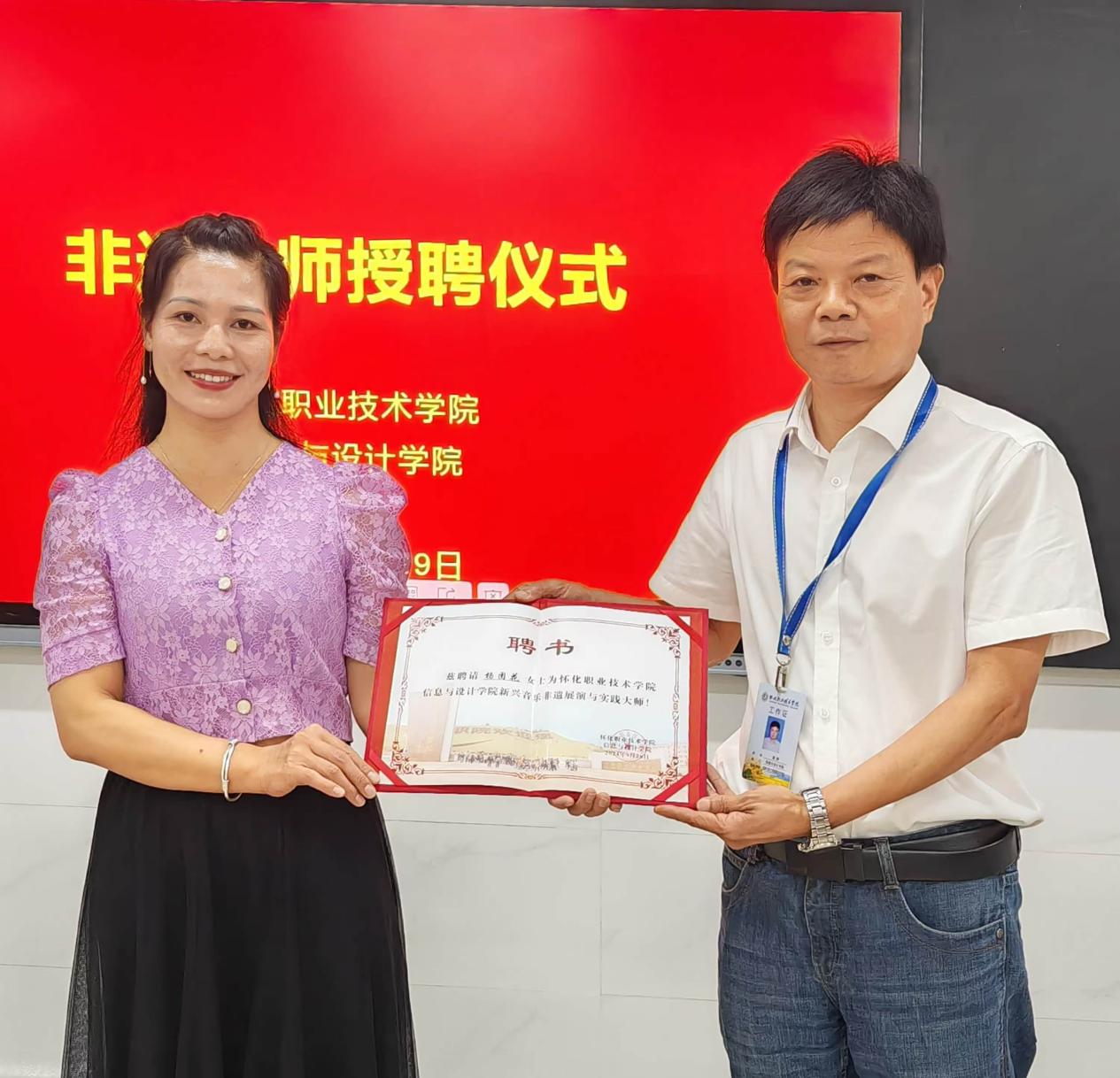 近日,学校信息与设计学院特邀湖南省人大代表、湖南省兴新音乐协会委员、侗族大歌非遗传承人杨团花女士为学校军民联谊会作侗族大歌《布谷催春》演唱指导,并聘请其为学院“新兴音乐非遗展演与实践大师”。