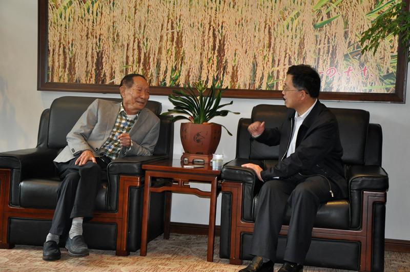 414日,院党委书记胡佳武、院长王聪田赴国家杂交水稻研究中心向名誉院长袁隆平院士汇报学院工作,袁院士亲切地接见了胡书记一行。