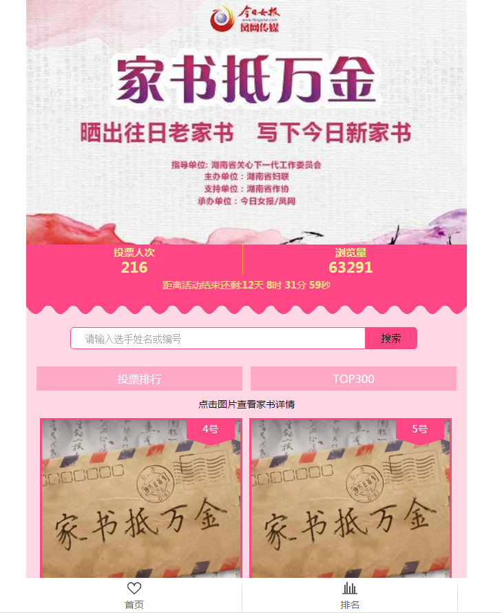 世间有百味,家书暖人心。由省关工委指导,省妇联主办的湖南省“家书抵万金”活动围绕“喜迎十九大,传承好家风”的主题,公开征集新老家书,我院推送的姚元林副教授的《给女儿的一封信——感恩,不仅仅是回报》、郑明娥副教授的《身教胜于言教》成功入围,两篇作品温情脉脉、真挚动人。活动目前正处于紧张的网络投票评选环节,希望广大师生积极踊跃地为万金家书投上宝贵的一票,传播正能量,美文共分享。