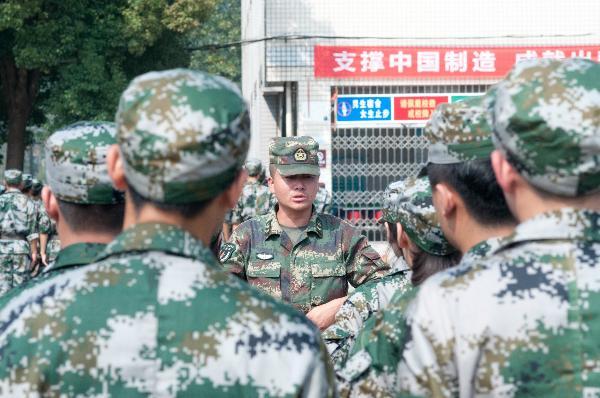 军训期间,商贸管理系340名新生在院系领导的关怀下,在军训教官、跟班辅导员的指导督导下,挥洒着自己的汗水,积极投入到紧张而严格的训练当中。